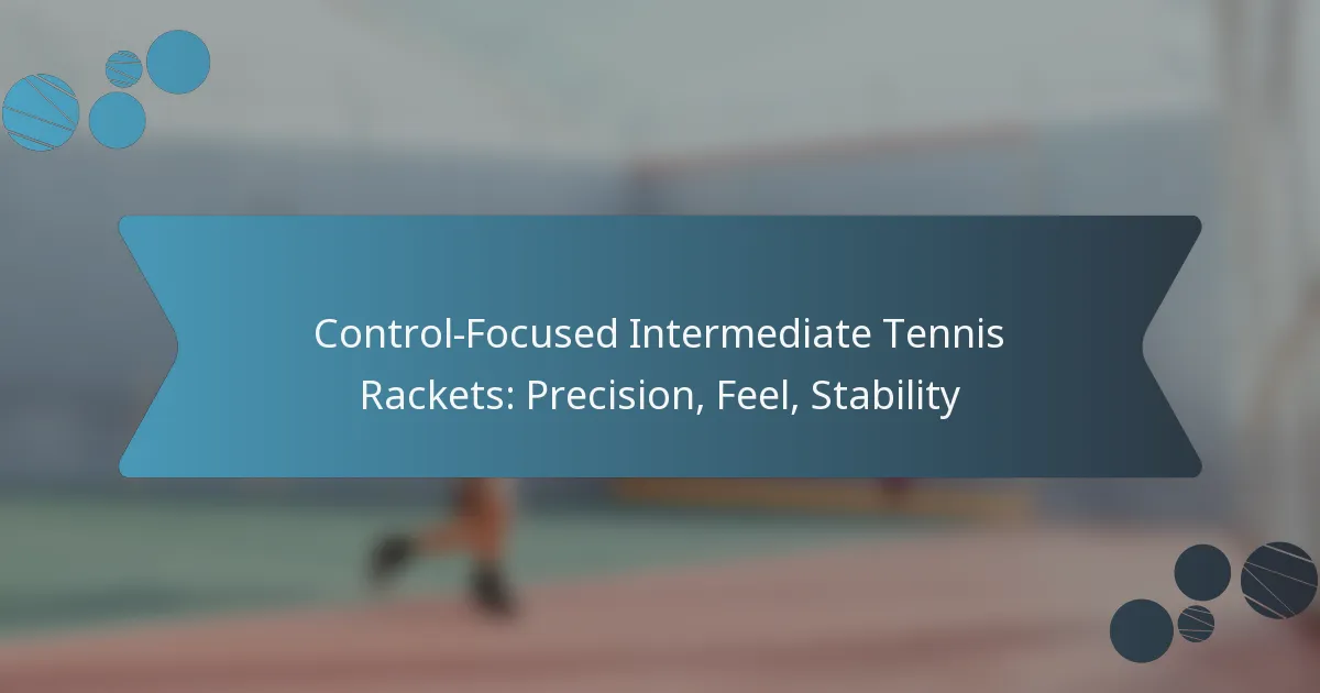 For control-focused intermediate tennis rackets, key specifications include weight distribution, balance, string pattern, head size, and grip comfort. These factors significantly influence precision, feel, and stability during play, allowing players to enhance their performance on the court.
